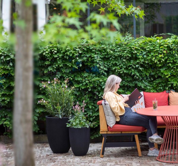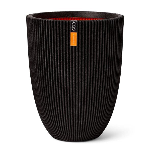 Deze duurzame bloempot uit de Capi Nature Groove NL collectie is CO2 neutraal geproduceerd en gemaakt met gerecyclede materialen. De oranje binnenkant van de pot is een knipoog naar de Nederlandse productie en tevens een isolatielaag die de potten beschermt tegen vorst in de winter en hitte in de zomer. Deze extra laag zorgt ook voor meer stevigheid, waardoor deze pot breukbestendig is. De pot is geschikt voor indoor en outdoor gebruik en beschikt over een levenslange garantie.