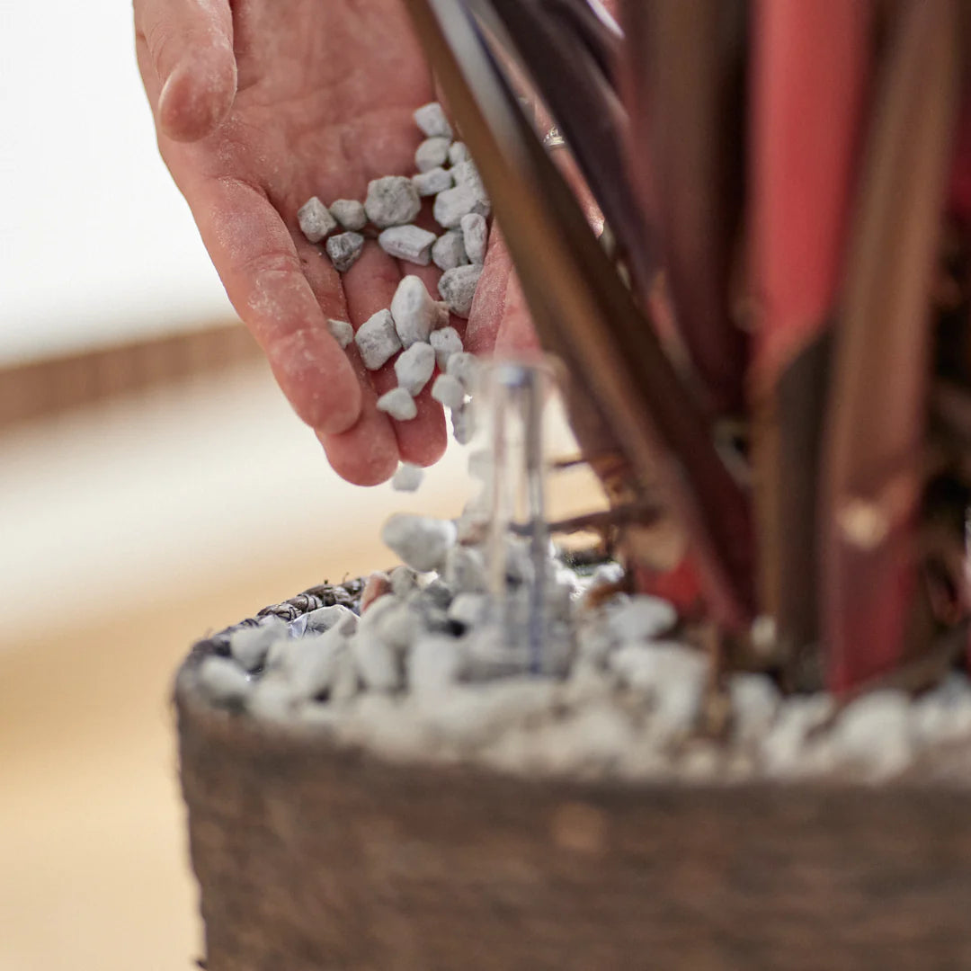 - Vul de pot af met vulkaankorrels.