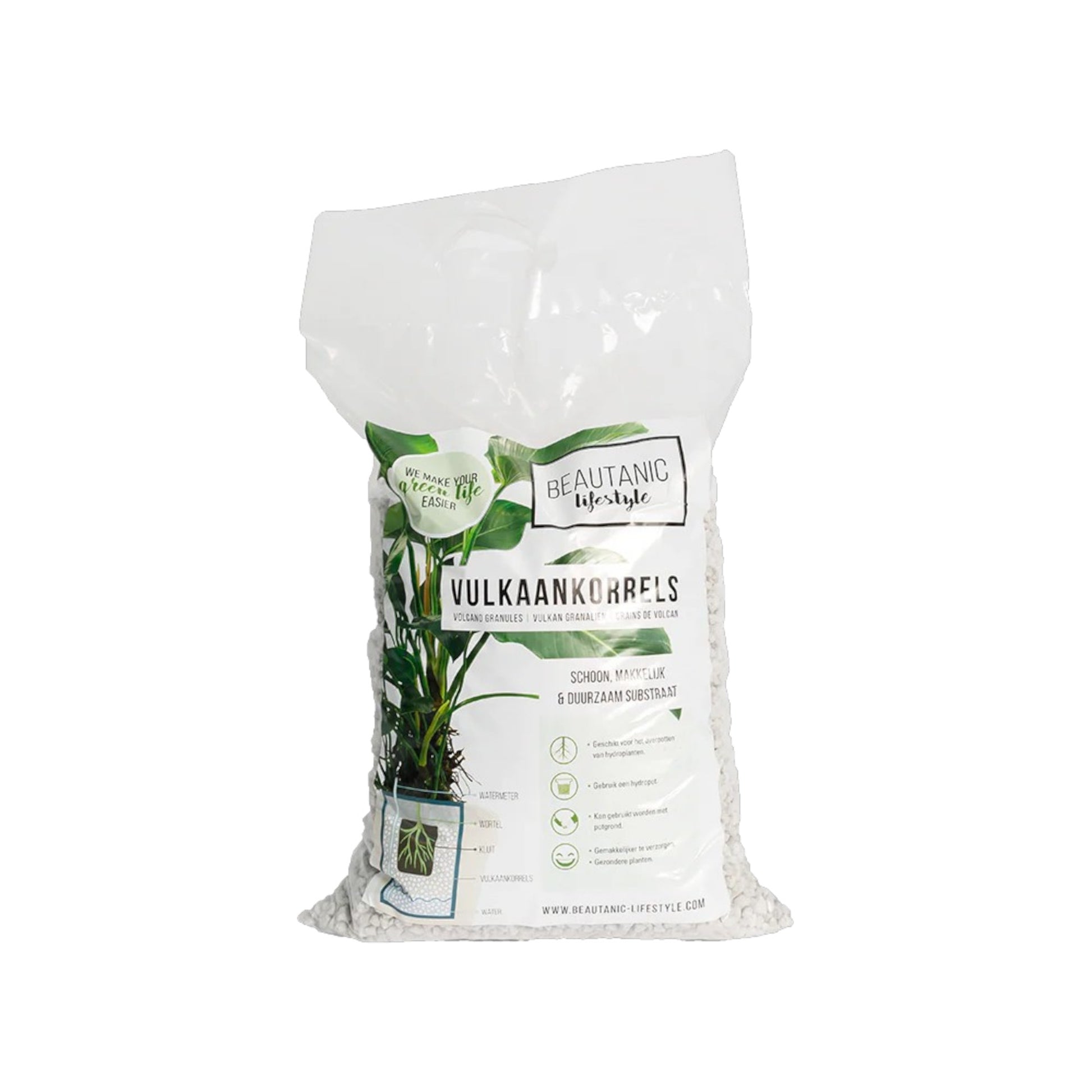 Dit is vrij eenvoudig. Het enige wat je nodig hebt is de speciale Beautanic Lifestyle pot met watermeter en de Beautanic Lifestyle vulkaankorrels